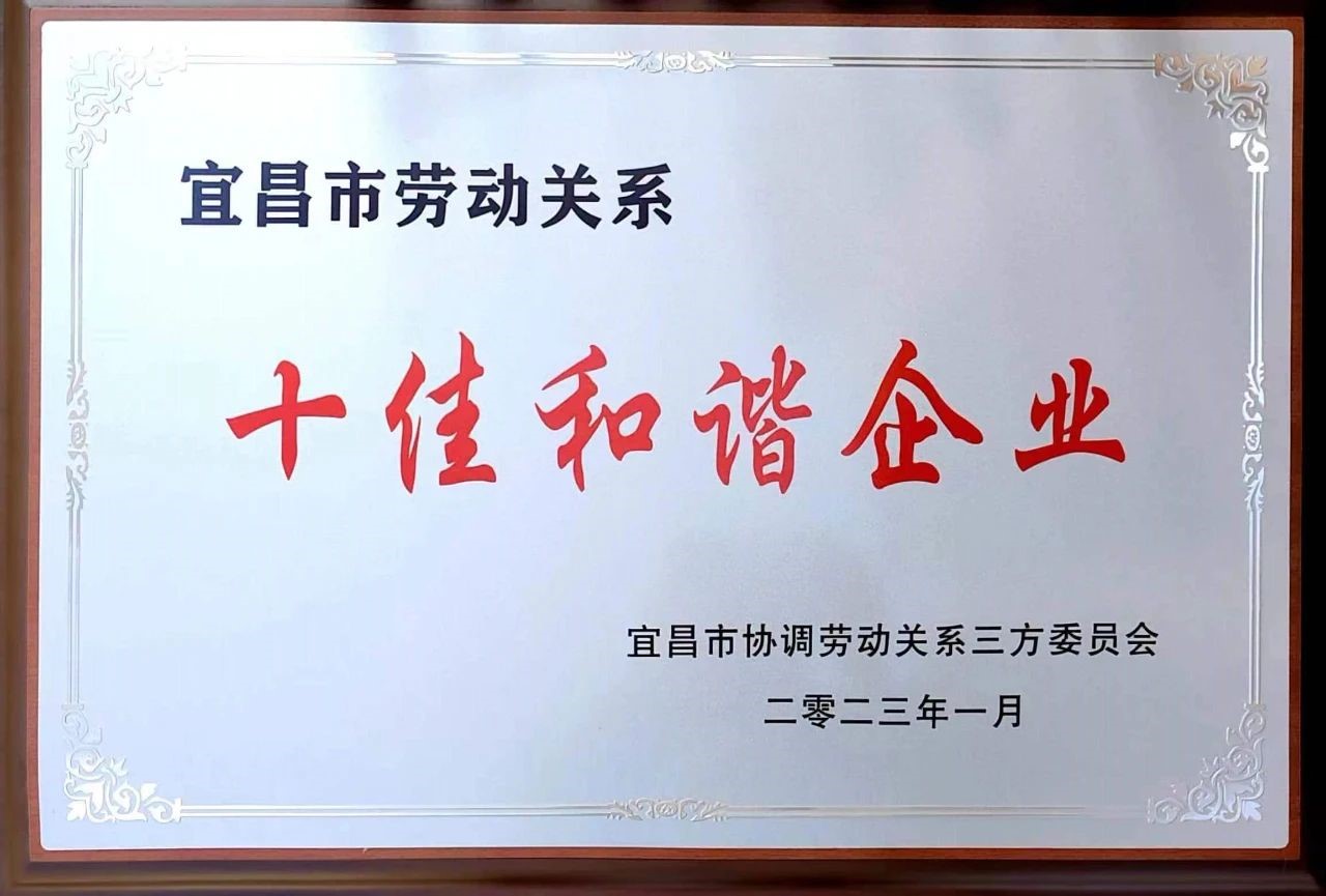 1月7日,宜昌市第三届劳动关系十佳和谐企业评选活动颁奖典礼在宜昌市广电中心一号演播大厅隆重举行。典礼表彰了宜昌市创建“劳动关系十佳和谐企业”及“最美农民工”“技能状元”代表,好体育全站app宜昌有限公司荣获宜昌市第三届“十佳和谐企业”称号。