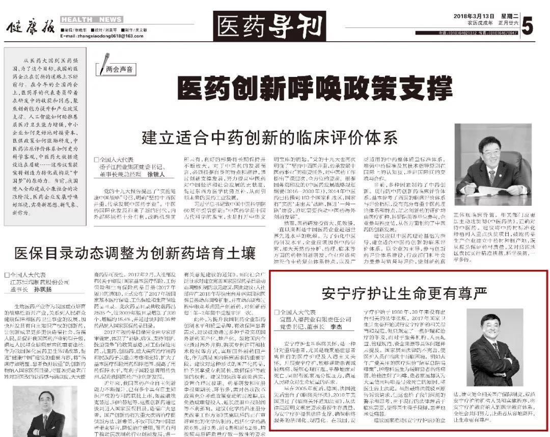 如何更好地实施临终关怀,帮助病人减少临终前的痛苦?全国人大代表,好体育全站app集团股份公司总裁,宜昌人福药业有限责任公司党委书记、董事长李杰建议推动《安宁疗护法》立法,进一步规范安宁疗护的标准和管理制度,帮助病人有质量有尊严地度过生命的最后时光。该建议受到媒体积极关注,并先后在中国新闻网、《健康报》登出。