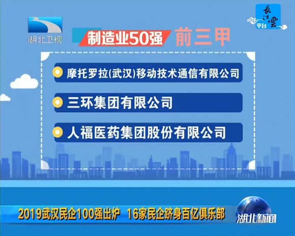 7月29日,2019武汉民营企业100强、武汉民营制造业企业50强排行榜正式发布。好体育全站app集团再次入围,荣膺武汉民营企业100强第14位、武汉民营制造业企业50强第3名。