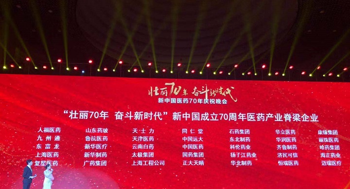 10月8日至10日,“2019中国医药企业家科学家投资家大会暨新中国成立70周年医药产业发展成就展”在北京举行。大会同期举行了“中国医药上市公司竞争力颁奖典礼”“中国医药创新企业100强发布”“壮丽70年,奋斗新时代”新中国医药70年纪念晚会、海内外医药创新公司投融资路演等多项活动。好体育全站app集团党委副书记、副总裁、董事会秘书李前伦应邀代表集团参会。会上,好体育全站app集团获“壮丽70年 奋斗新时代”新中国成立70周年医药产业脊梁企业、“中国医药创新企业100强(第19位)”两项殊荣。