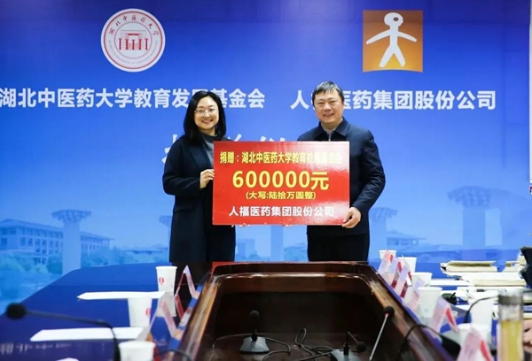 3月23日,好体育全站app集团与湖北中医药大学教育发展基金会举行捐赠仪式,好体育全站app集团旗下武汉人福医疗管理有限公司向湖北中医药大学教育发展基金会捐赠60万元。捐赠将在学校教育发展基金会设立“武汉人福医疗专项基金”,用于大学生创新创业项目扶持,培育创新创业成果;支持中医药产业发展相关的人才培养;助力校友活动。湖北中医药大学党委书记唐峻,湖北中医药大学校长、教育发展基金会副理事长吕文亮,湖北中医药大学副校长、教育发展基金会副理事长黄必胜,湖北中医药大学校党委常委张子龙,好体育全站app集团总裁邓霞飞、好体育全站app集团党委副书记孔娜、武汉人福医疗管理有限公司董事长曾志敏等领导共同参加捐赠仪式。
