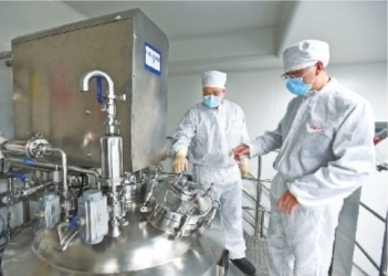 人福普克药业(武汉)有限公司技术人员巡查溶胶罐设备
